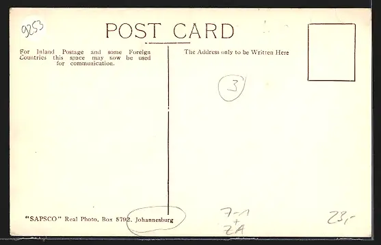 Personenbezogene Daten auf der Rückseite der Karte wurden durch blauen Textmarker unkenntlich gemacht. Die blauen Stellen sind auf die Vorderseite durchgeweicht und wirken sich negativ auf das Postkartenfoto aus