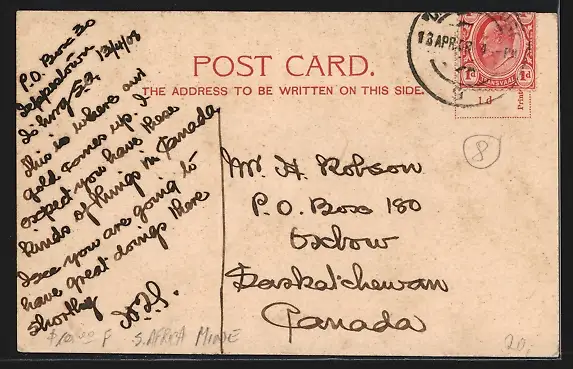 Personenbezogene Daten auf der Rückseite der Karte wurden durch blauen Textmarker unkenntlich gemacht. Die blauen Stellen sind auf die Vorderseite durchgeweicht und wirken sich negativ auf das Postkartenfoto aus