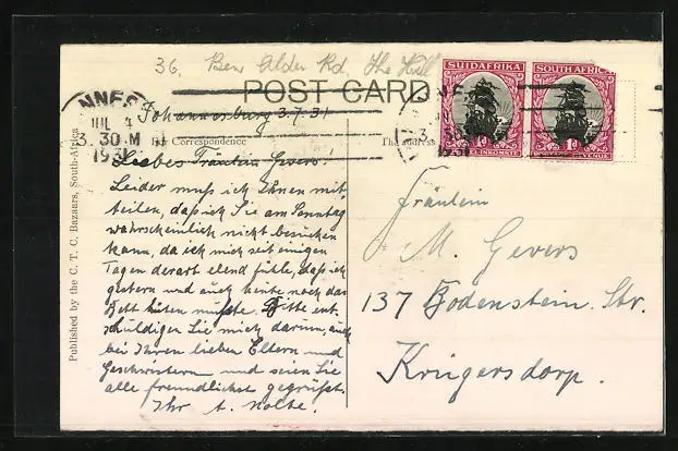 Ein Angebot in Ansichtskarten Südafrika - 3.021 weitere Angebote in dieser Kategorie