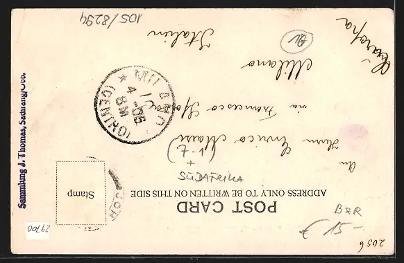 alte Ansichtskarte, gelaufen, Briefmarke entfernt, guter Zustand