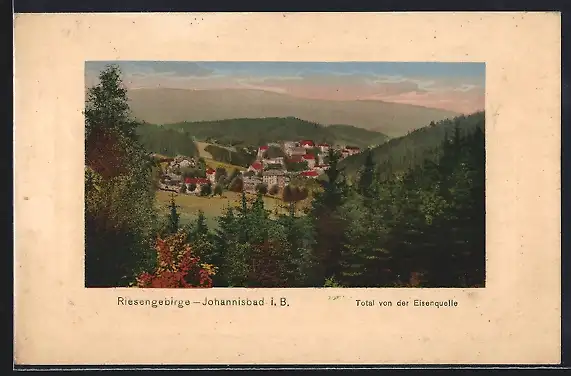 AK Johannisbad i. B. /Riesengebirge, Totalansicht von der Eisenquelle