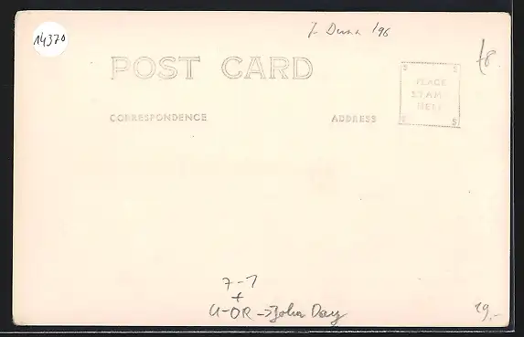 Personenbezogene Daten auf der Rückseite der Karte wurden durch blauen Textmarker unkenntlich gemacht. Die blauen Stellen sind auf die Vorderseite durchgeweicht und wirken sich negativ auf das Postkartenfoto aus