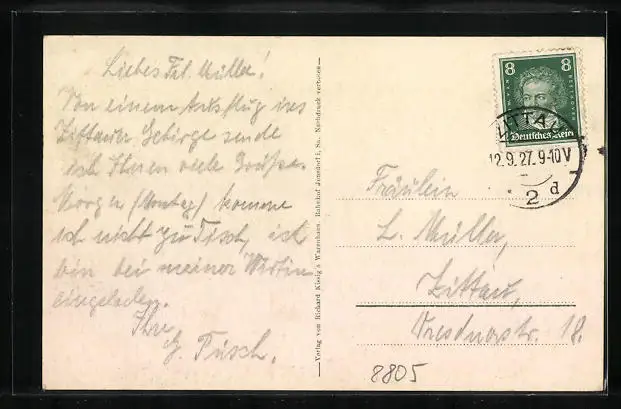 alte Ansichtskarte, gelaufen 1927, guter Zustand