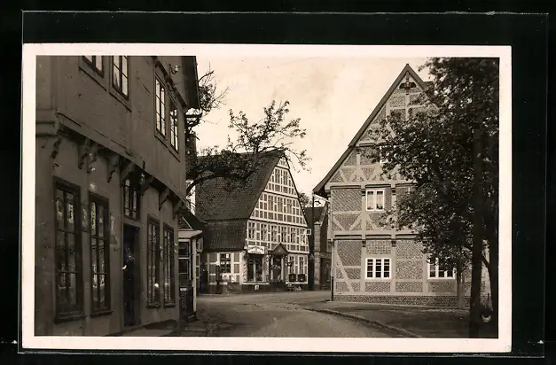 AK Jork, Strassenpartie mit Fachwerkhäusern