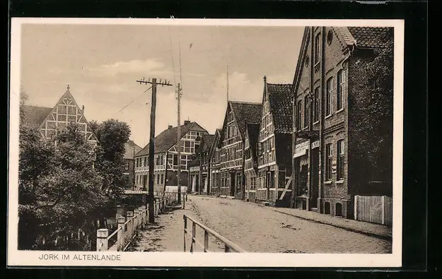 AK Jork i. Altenlande, Strassenpartie mit Fachwerkhäusern
