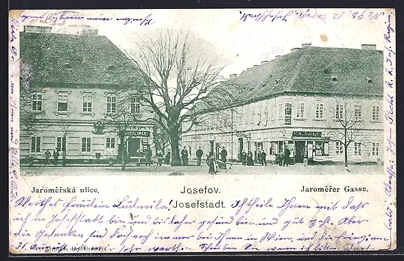 AK Josefstadt / Josefov / Jaromer, Jaromerer Gasse mit Geschäften