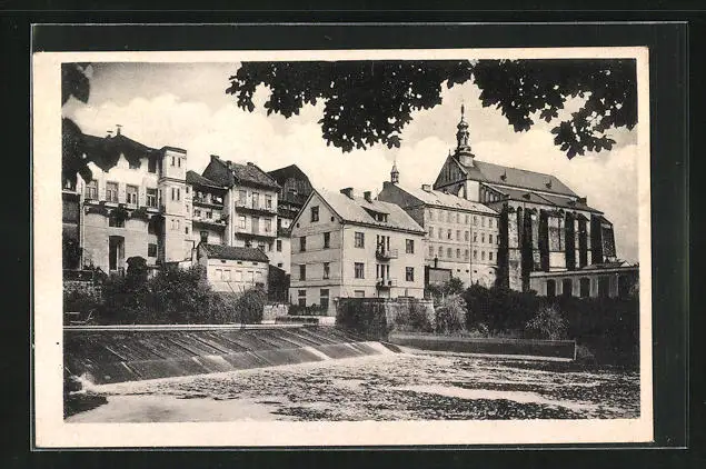 AK Josefstadt / Josefov / Jaromer, Ortspartie an der Kirche