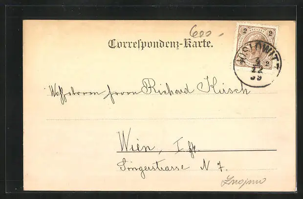 alte Ansichtskarte, gelaufen 1899, Stempelspur, guter Zustand
