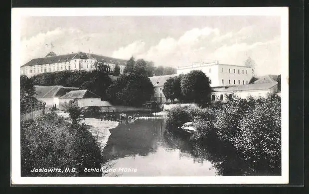 AK Joslowitz in Mähren, Niederdonau, Partie an der Mühle unter dem Schloss