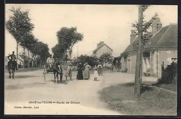 AK Joué-lès-Tours, Route de Chinon avec calèche et piétons