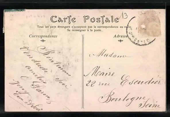 alte Ansichtskarte, gelaufen, Briefmarke entfernt, guter Zustand