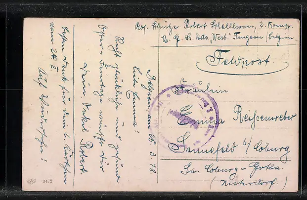 alte Ansichtskarte, gelaufen als Feldpost, guter Zustand