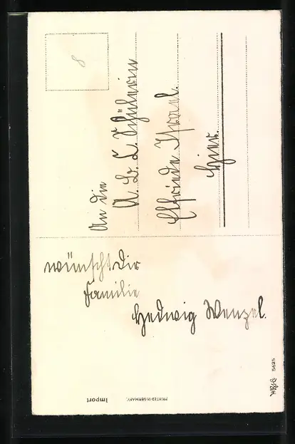 Personenbezogene Daten auf der Rückseite der Karte wurden durch blauen Textmarker unkenntlich gemacht. Die blauen Stellen sind auf die Vorderseite durchgeweicht und wirken sich negativ auf das Postkartenfoto aus