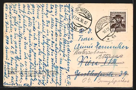 alte Ansichtskarte, gelaufen 1936, Stempelspur, guter Zustand
