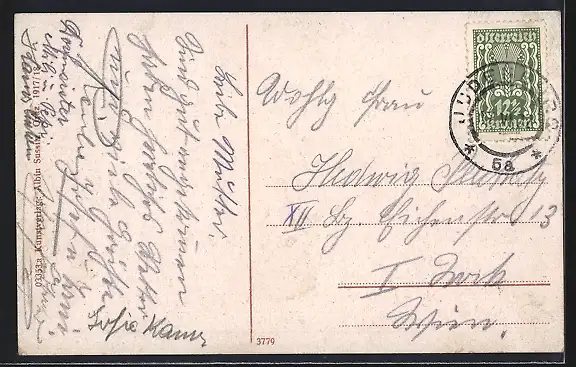 alte Ansichtskarte, gelaufen 1922, Bugspur re. oben, guter Zustand
