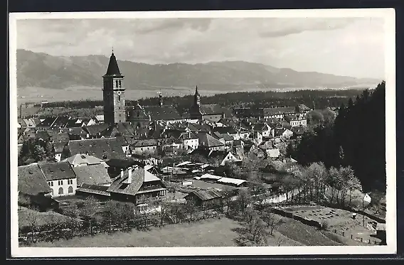 AK Judenburg, Totalansicht mit Rathaus- und Kirchturm
