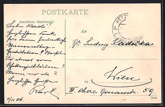 alte Ansichtskarte, gelaufen 1906, Briefmarke entfernt, guter Zustand