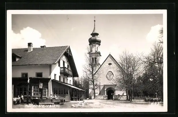 AK Judenstein, Ortspartie mit Gasthaus und Kirche