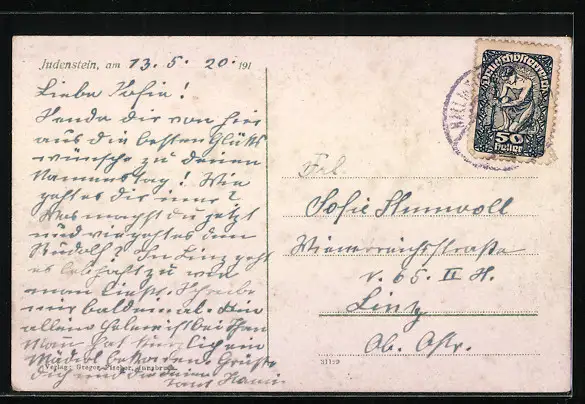 alte Ansichtskarte, gelaufen 1920, Oberflächenschaden, guter Zustand