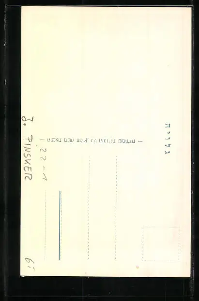 Personenbezogene Daten auf der Rückseite der Karte wurden durch blauen Textmarker unkenntlich gemacht. Die blauen Stellen sind auf die Vorderseite durchgeweicht und wirken sich negativ auf das Postkartenfoto aus