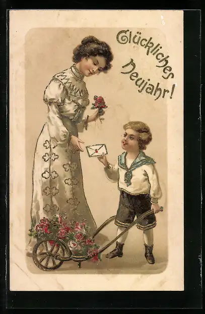 AK Jüngling schenkt zu Neujahr einer Dame einen Brief
