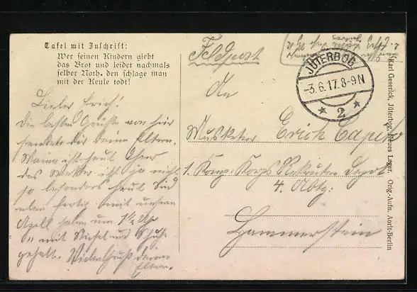 alte Ansichtskarte, gelaufen 1917, guter Zustand