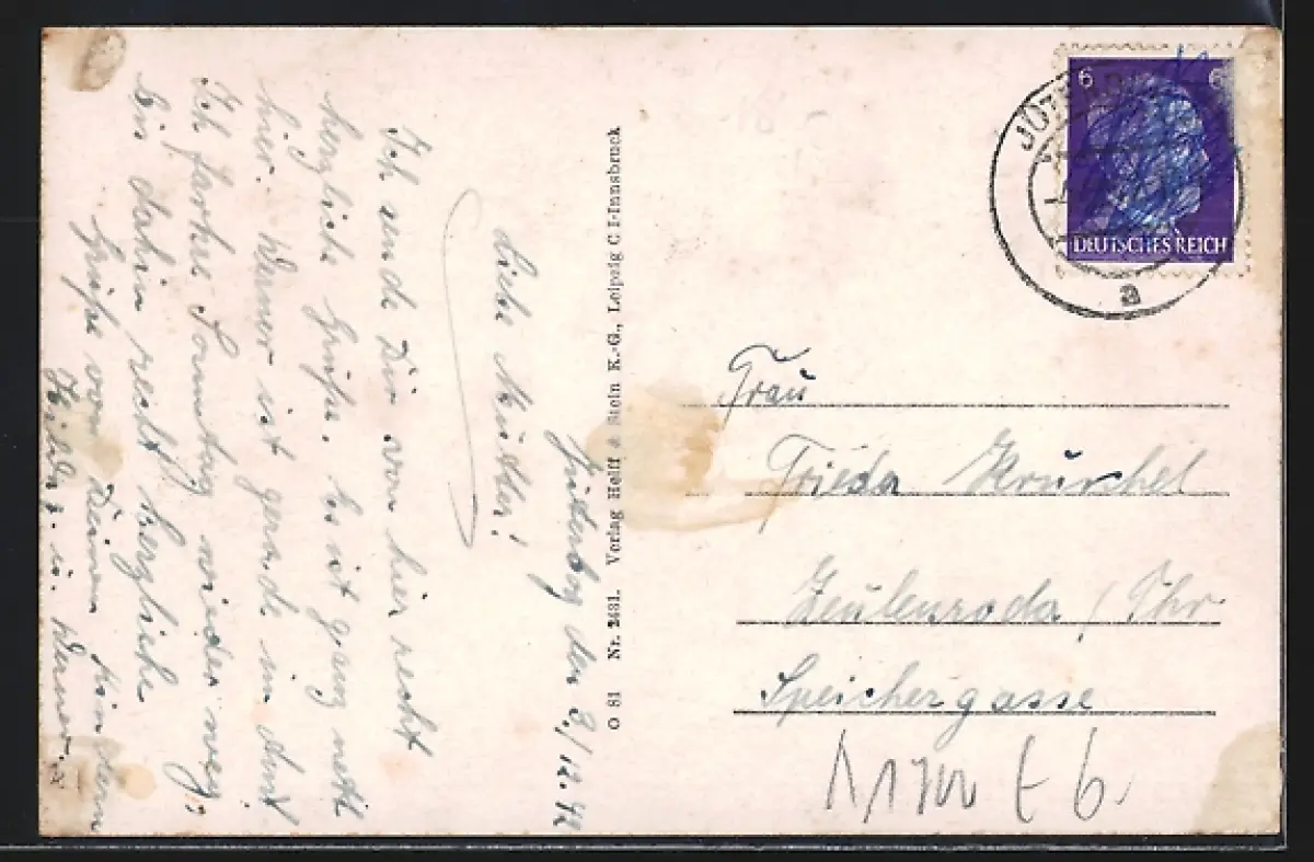 alte Ansichtskarte, gelaufen, rückseitig Klebe- und Papierreste, guter Zustand