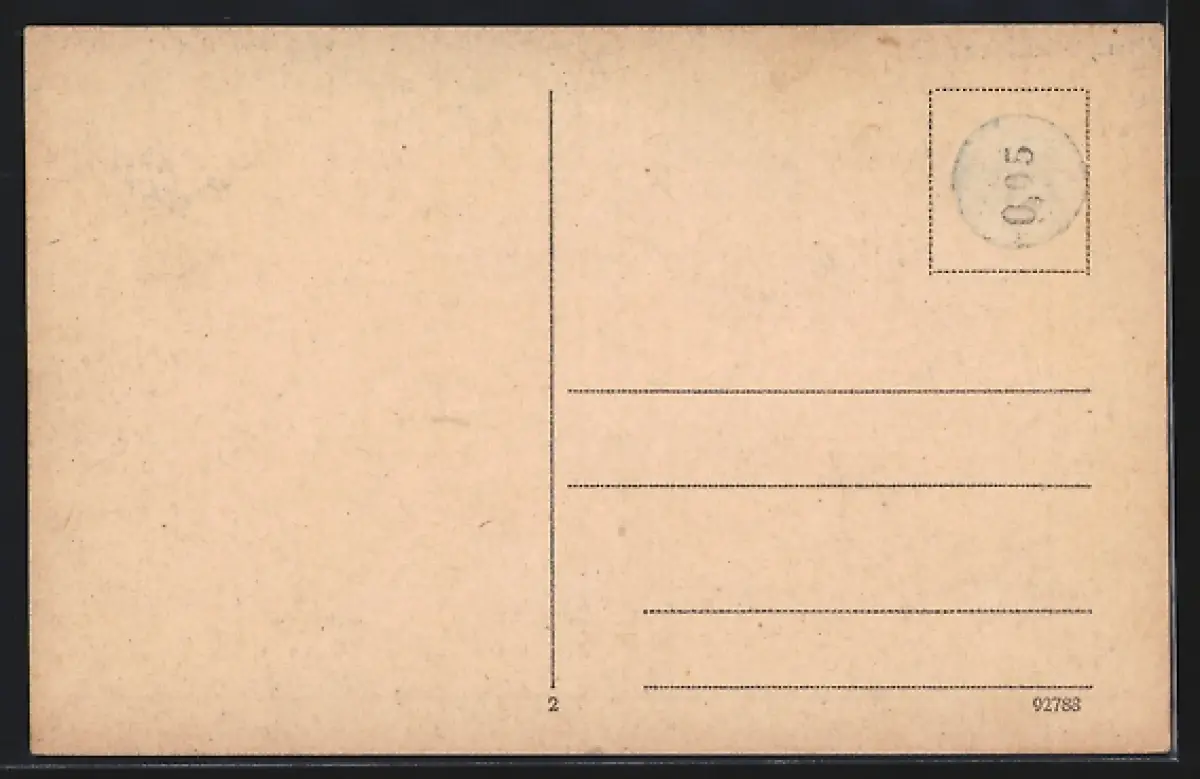 Personenbezogene Daten auf der Rückseite der Karte wurden durch blauen Textmarker unkenntlich gemacht. Die blauen Stellen sind auf die Vorderseite durchgeweicht und wirken sich negativ auf das Postkartenfoto aus