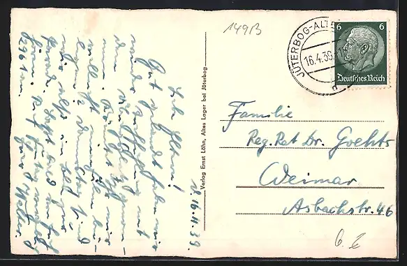 alte Ansichtskarte, gelaufen 1939, guter Zustand