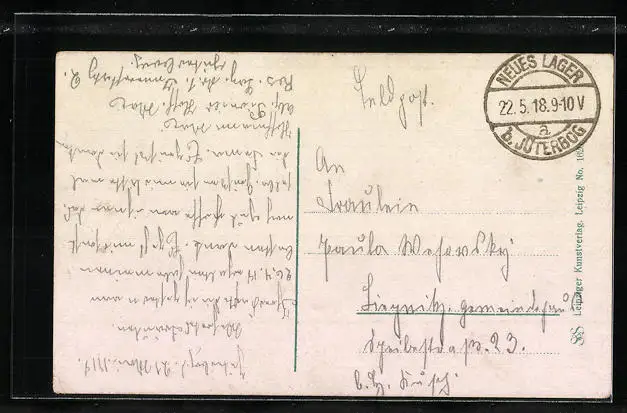 alte Ansichtskarte, gelaufen 1918 als Feldpost, Eckknick unten re., guter Zustand