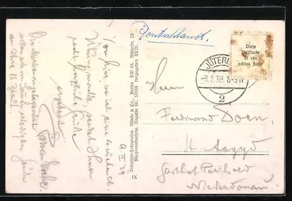 alte Ansichtskarte, gelaufen 1939, Briefmarke entfernt, guter Zustand