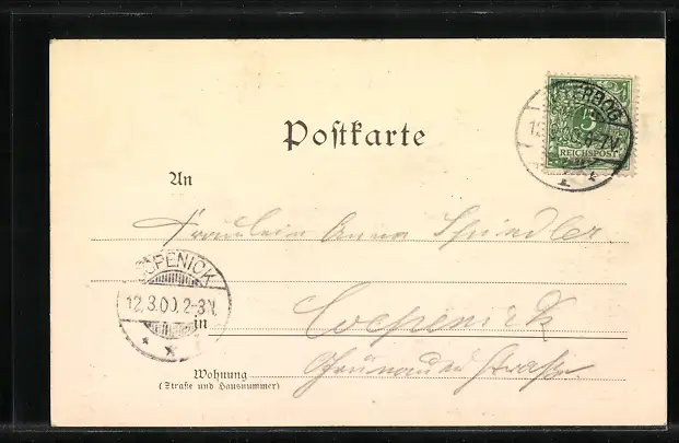 alte Ansichtskarte, gelaufen 1900, guter Zustand