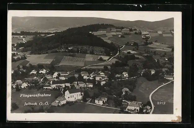 AK Julbach /O.-Ö., Teilansicht mit Kirche, Fliegeraufnahme
