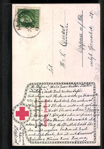 gelaufen 1911, Eckknicke li. unten u. re. oben, guter Zustand