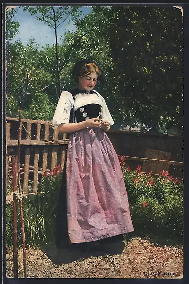 AK Junge Bernerin in ihrem Garten in Tracht