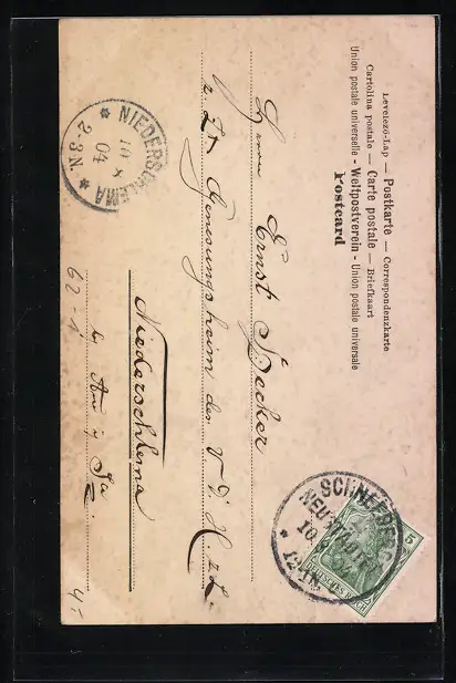 alte Ansichtskarte, gelaufen 1904, Eckknick re. oben, guter Zustand