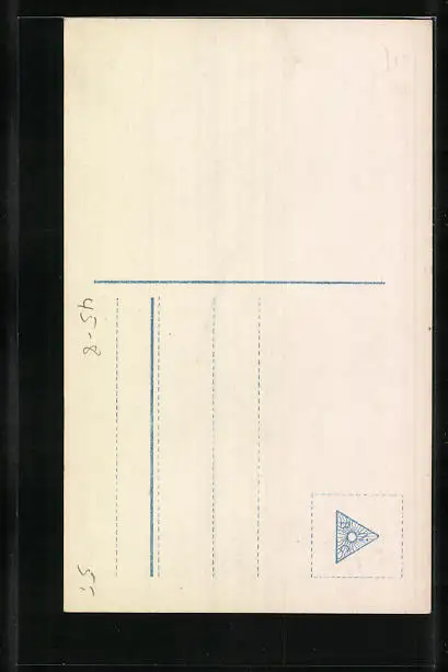 Personenbezogene Daten auf der Rückseite der Karte wurden durch blauen Textmarker unkenntlich gemacht. Die blauen Stellen sind auf die Vorderseite durchgeweicht und wirken sich negativ auf das Postkartenfoto aus