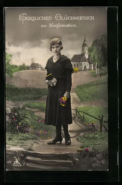 AK Junge Dame mit Gebetsbuch zur Konfirmation