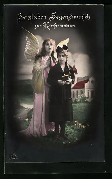 AK Junge Dame neben Schutzengel zur Konfirmation