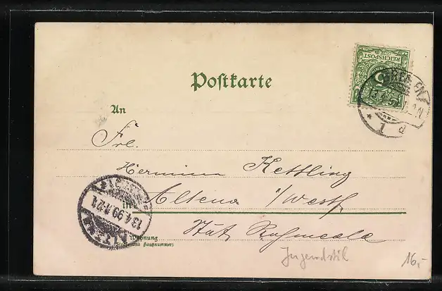 alte Ansichtskarte, gelaufen 1899, guter Zustand