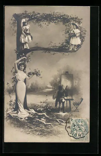 AK Junge Dame und Mädchen posieren am Buchstaben P