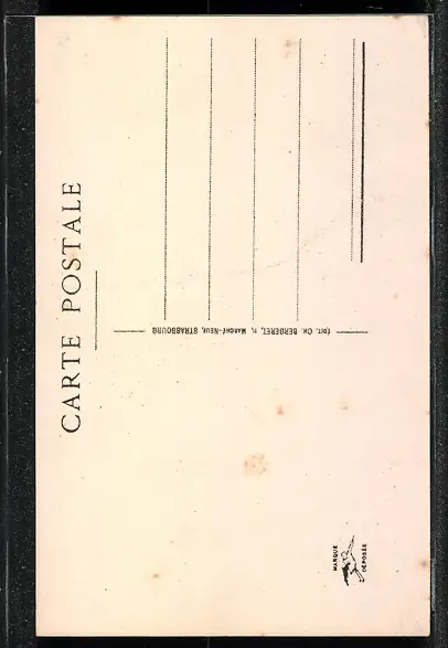 Personenbezogene Daten auf der Rückseite der Karte wurden durch blauen Textmarker unkenntlich gemacht. Die blauen Stellen sind auf die Vorderseite durchgeweicht und wirken sich negativ auf das Postkartenfoto aus