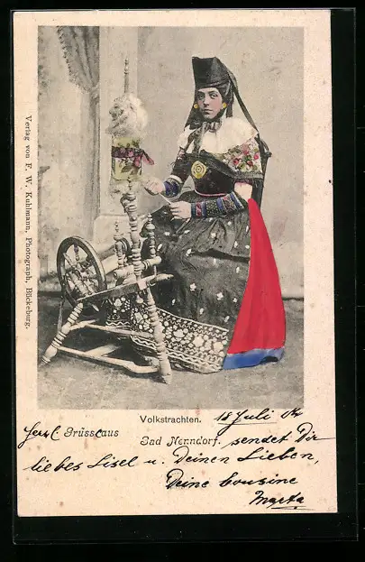 AK Junge Frau am Spinnrad in Schaumburg-Lippischer Landestracht