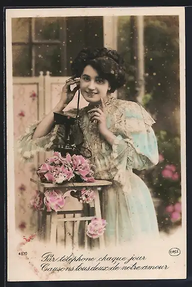 AK Junge Frau am Telefon