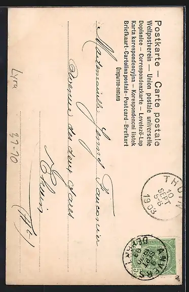 alte Ansichtskarte, gelaufen 1903, Eckknick re. unten, guter Zustand
