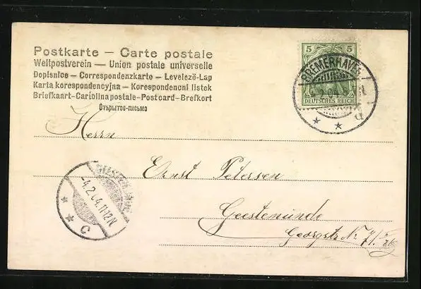 alte Ansichtskarte, gelaufen 1904, guter Zustand