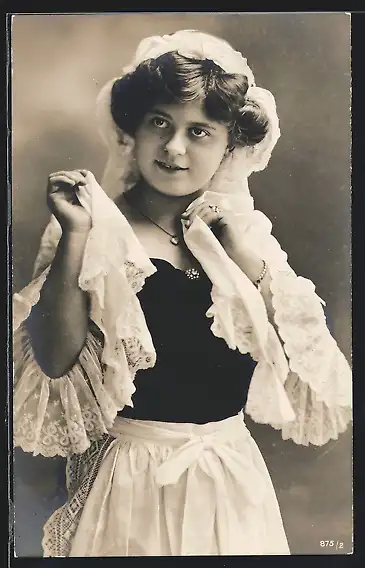 AK Junge Frau im Kleid mit weisser Spitze und Herzkette
