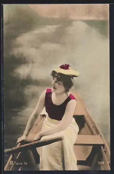 AK Junge Frau im Ruderboot