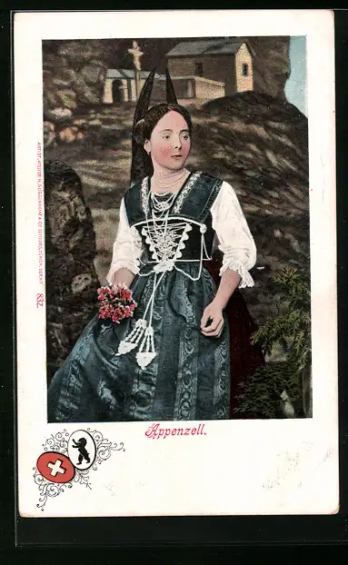 AK Junge Frau in Appenzeller Tracht mit Blumen