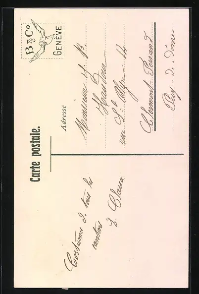 Personenbezogene Daten auf der Rückseite der Karte wurden durch blauen Textmarker unkenntlich gemacht. Die blauen Stellen sind auf die Vorderseite durchgeweicht und wirken sich negativ auf das Postkartenfoto aus